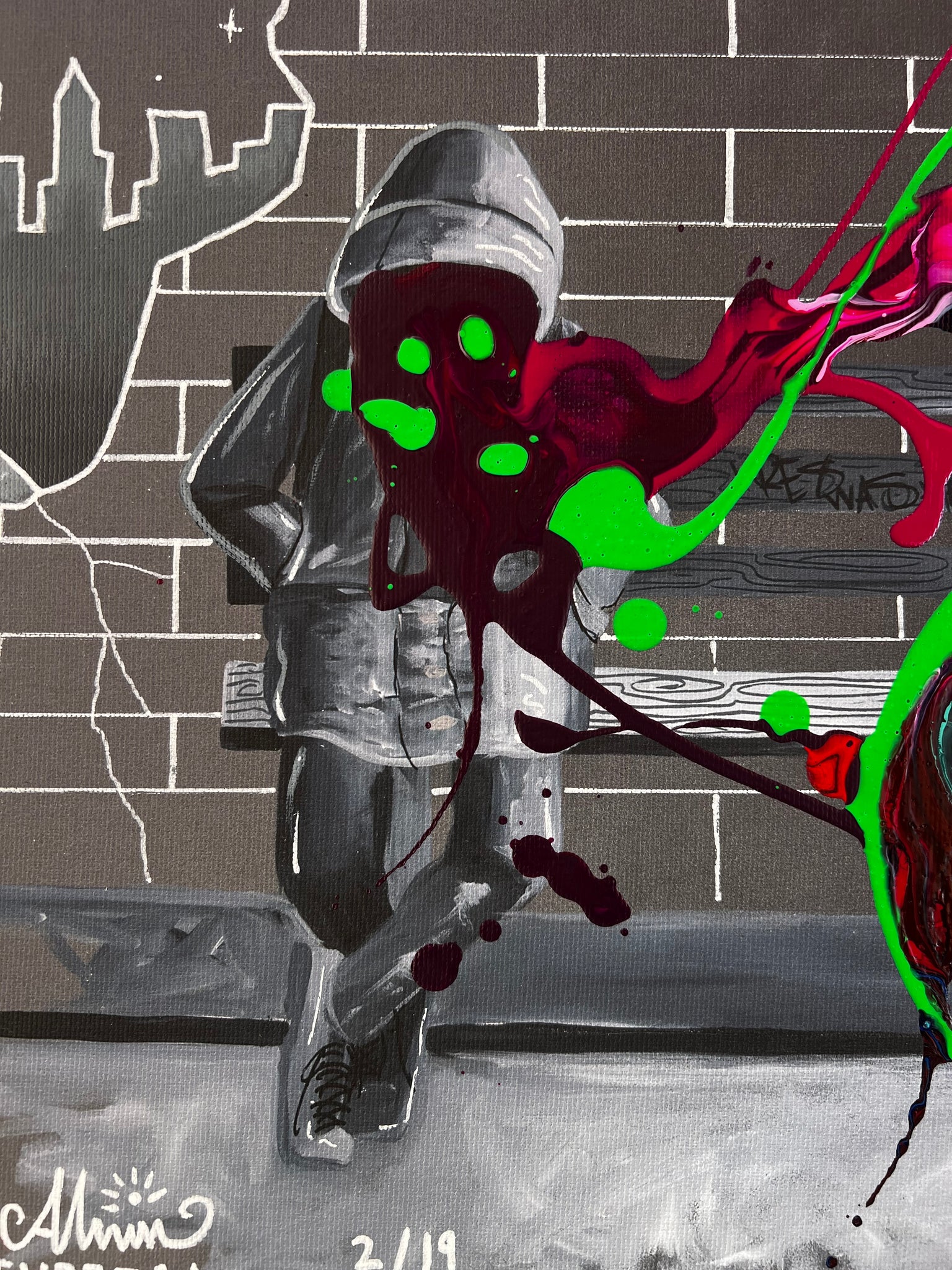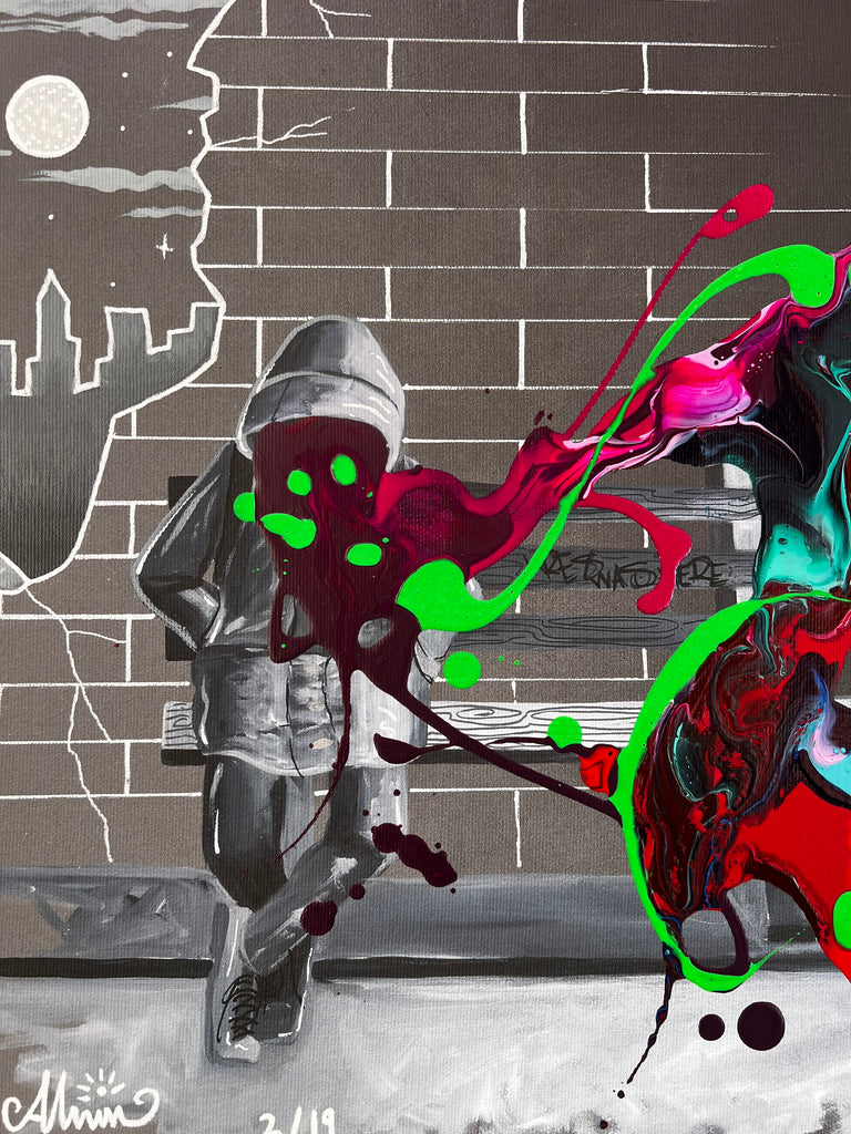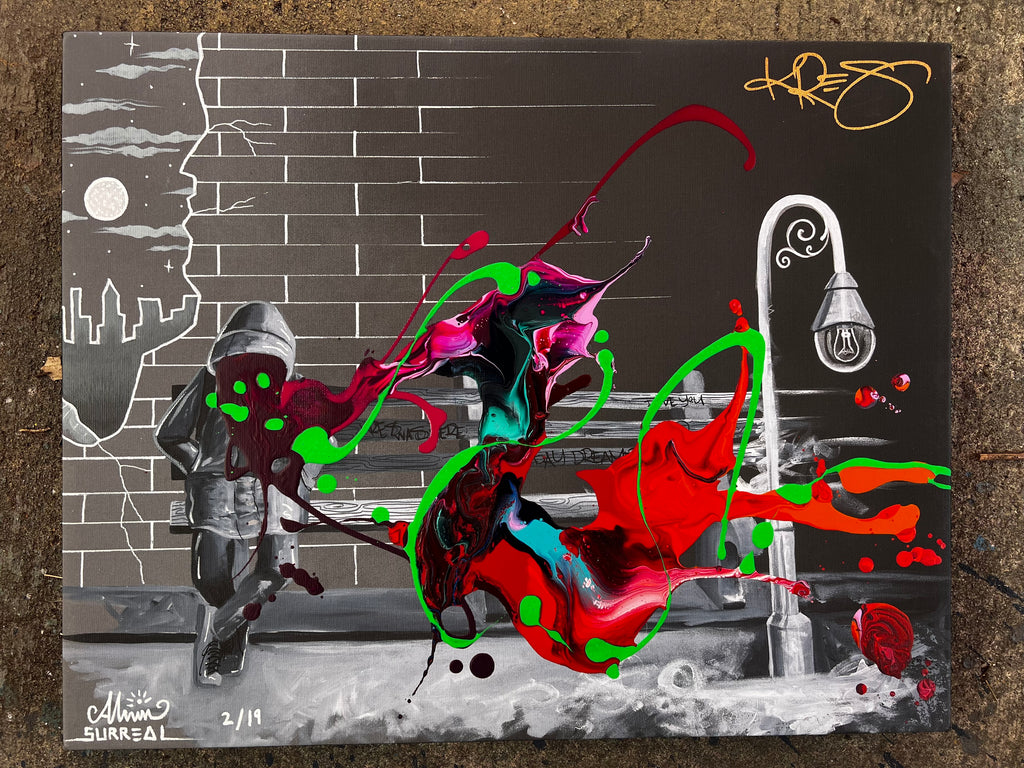 - Canvas print with original acrylic abstract by KRE8 and hand painting by Alvin Surreal