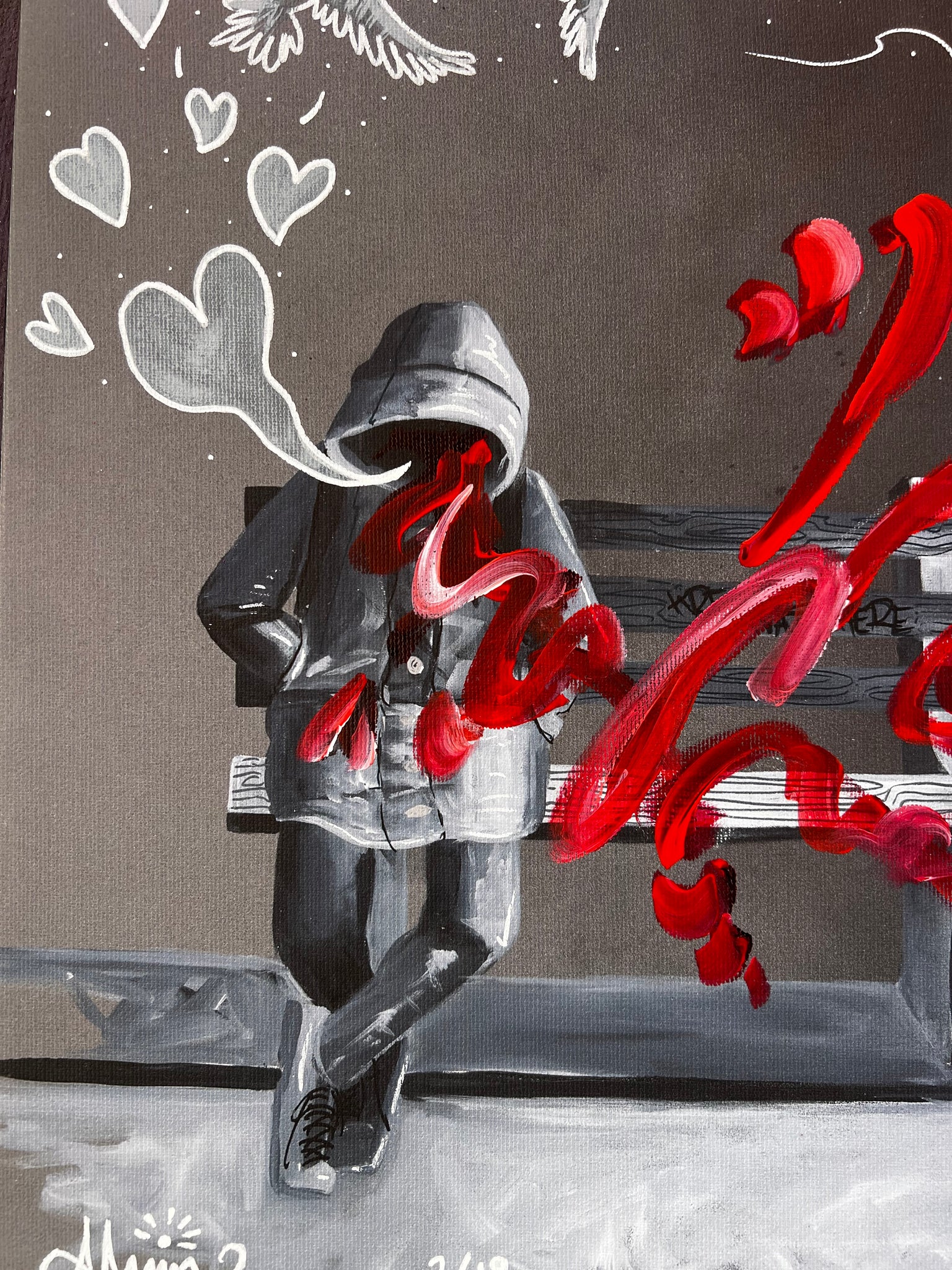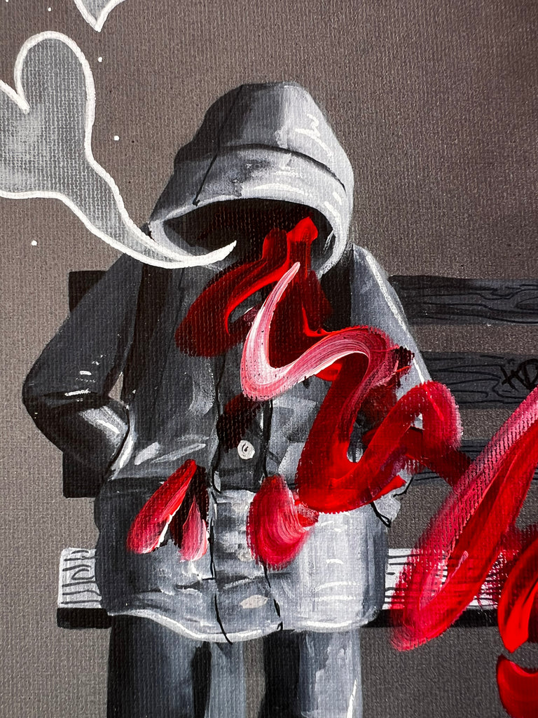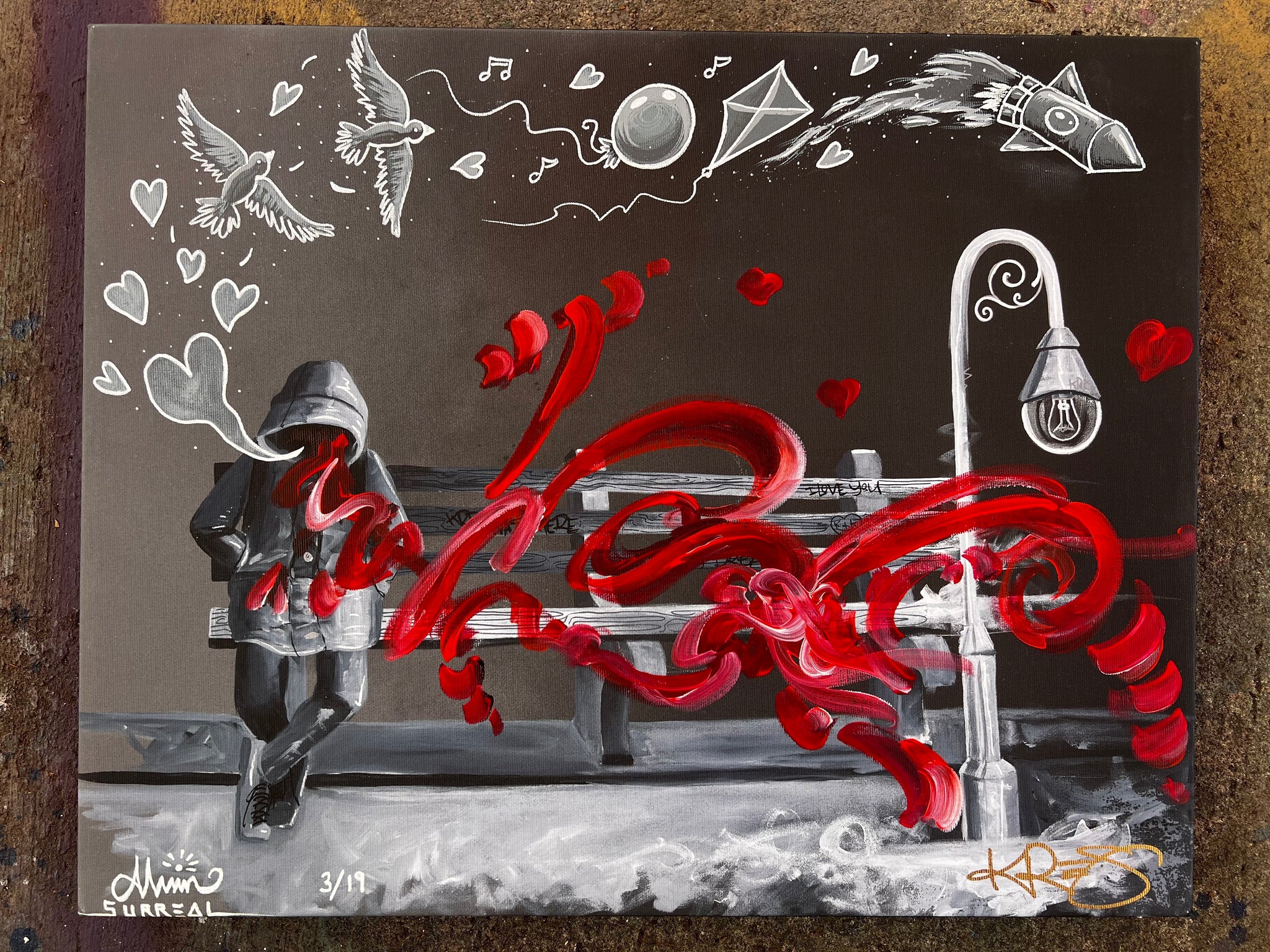 - Canvas print with original acrylic abstract by KRE8 and hand painting by Alvin Surreal