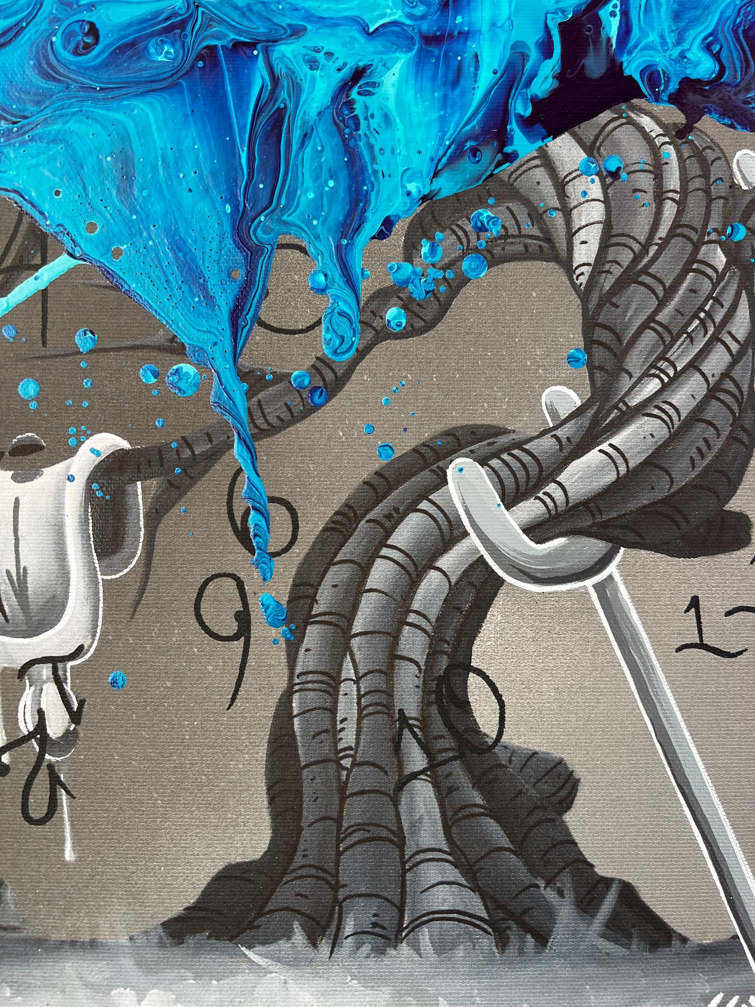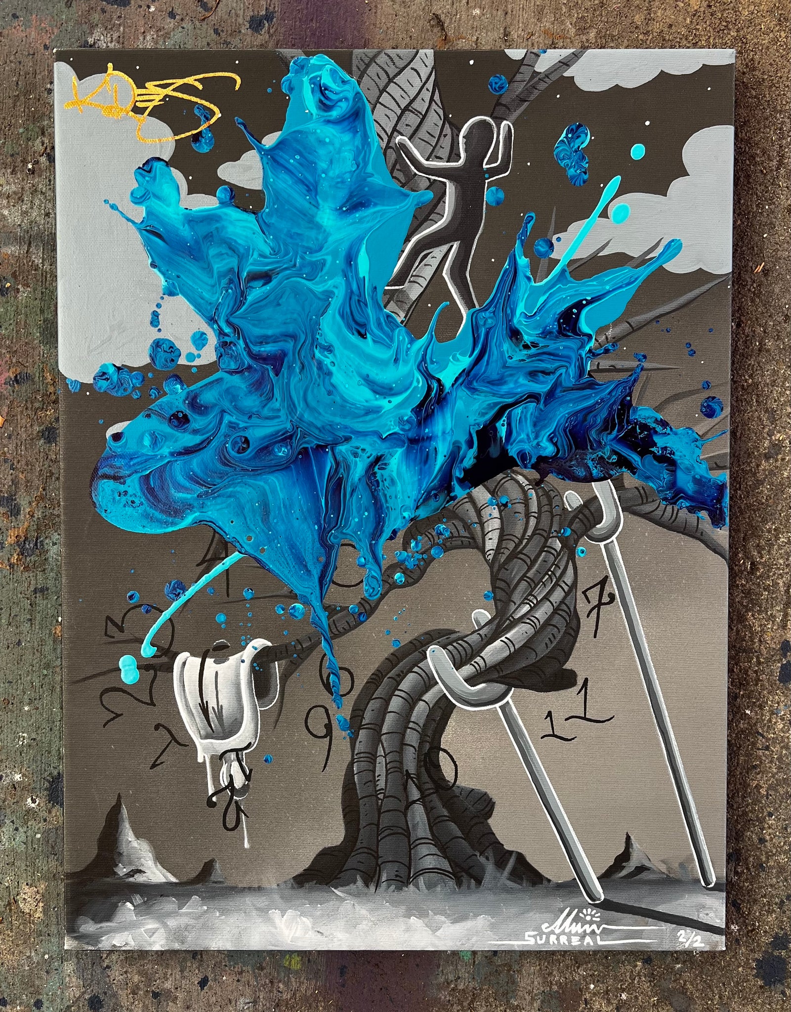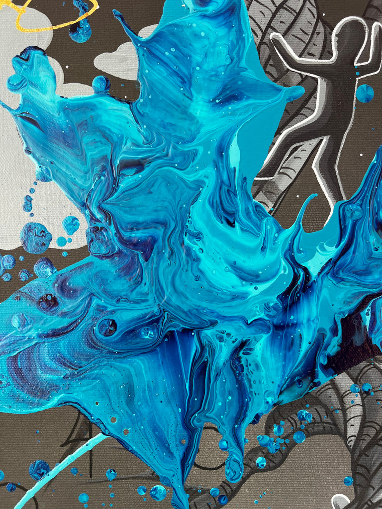 - Canvas print with original acrylic abstract by KRE8 and hand painting by Alvin Surreal