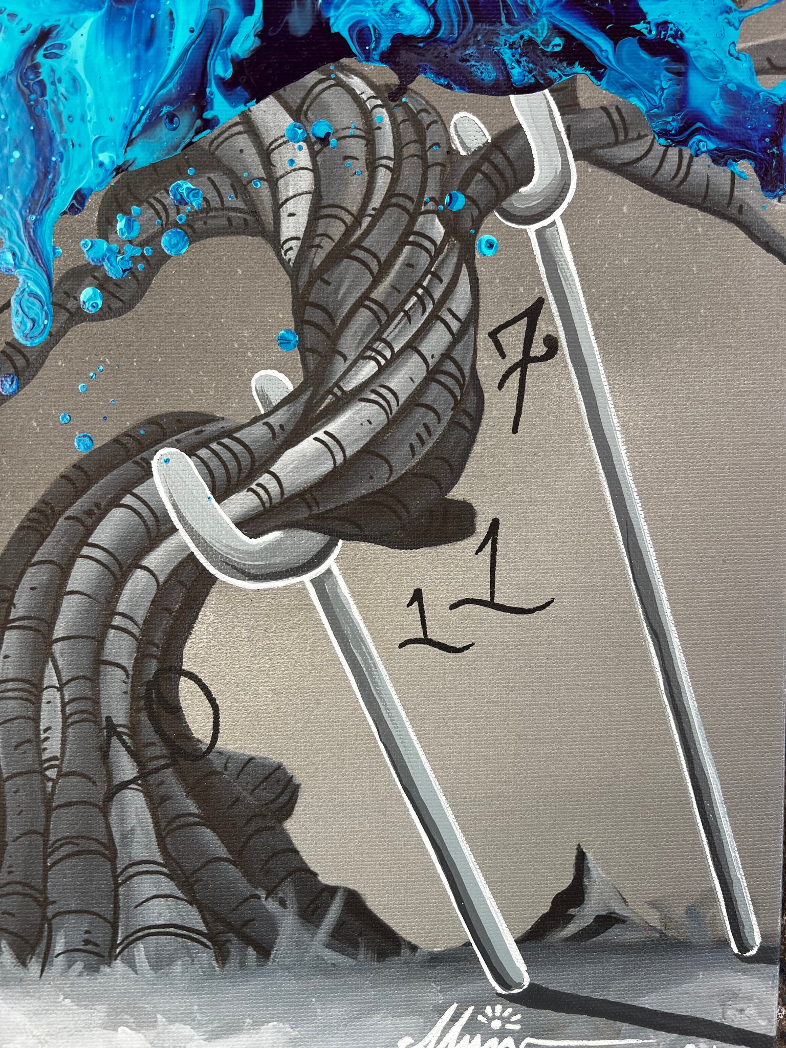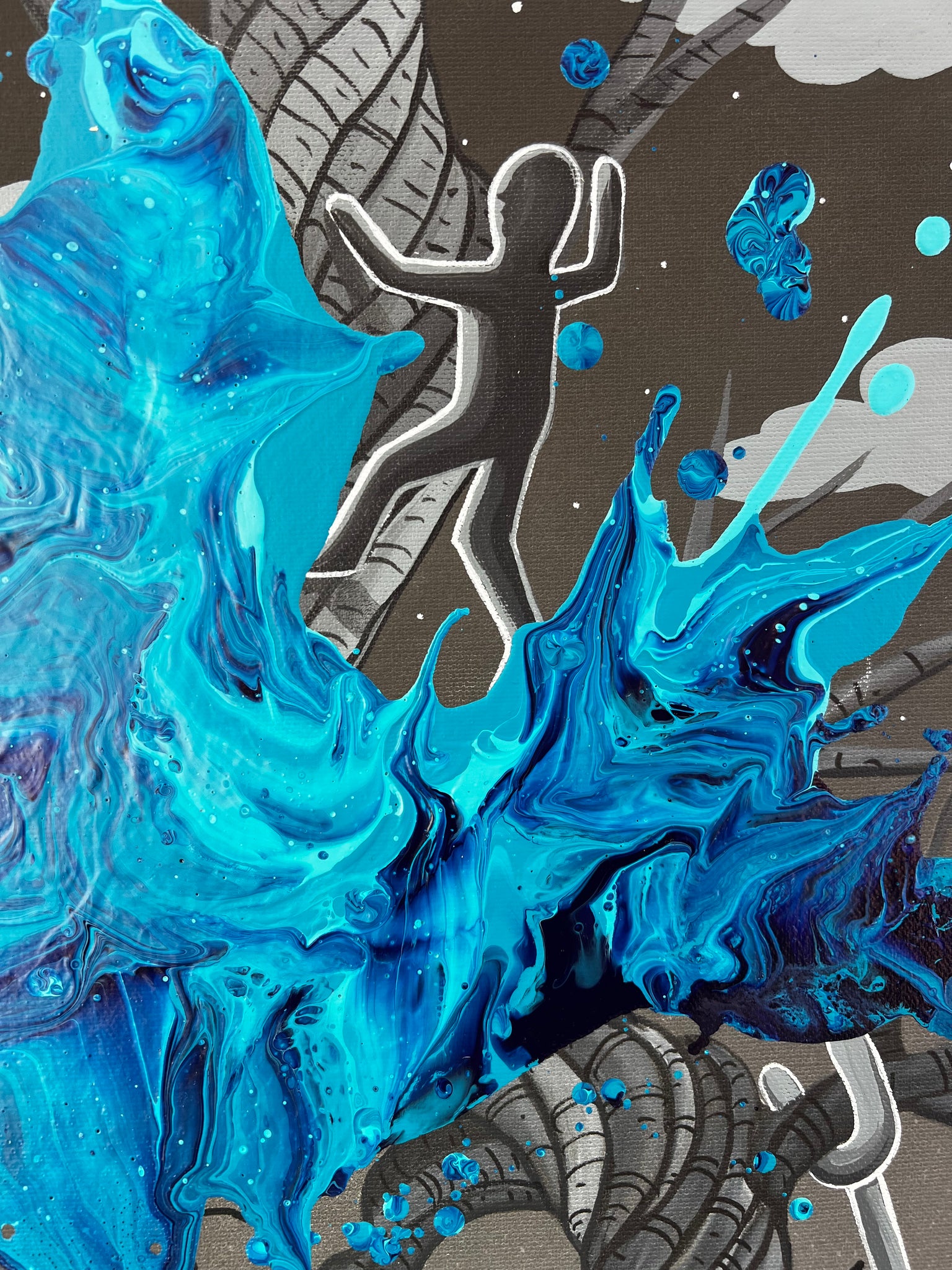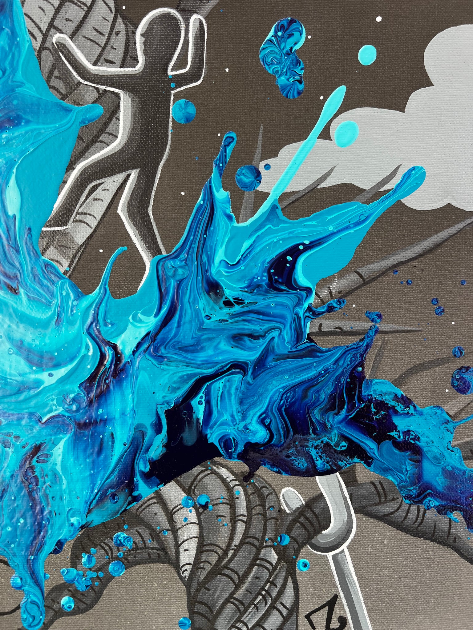 - Canvas print with original acrylic abstract by KRE8 and hand painting by Alvin Surreal